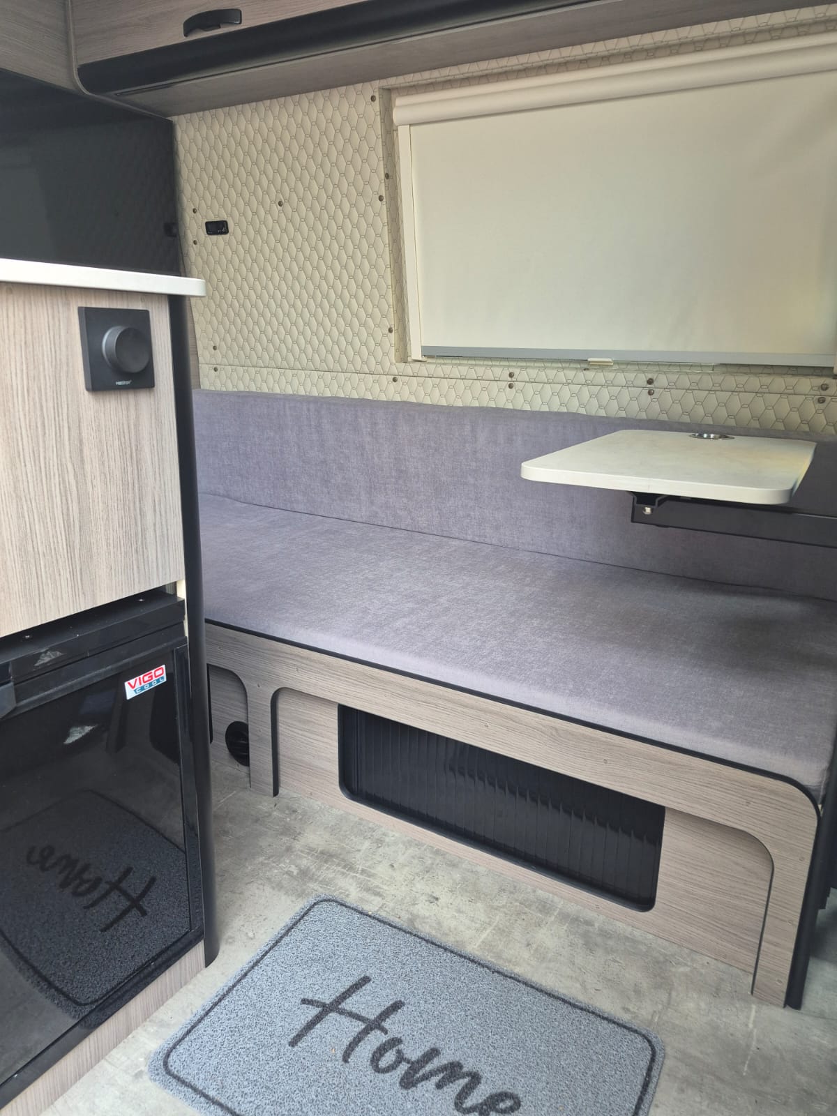 Netradiční vestavba Iveca Daily spočívá v oddělení dvou prostorů. Nákladní prostor a prostor pro odpočinek a práci. Prostor pro odpočinek zahrnuje sedačku ,která se dá rozložit až na cca 130cm šířky. Otočná dvojsedačka na kterou dosáhne pohodlně stolek na principu Laguna Table. Elektroinstalace je postavena tradičně na základu Victron Energy - Multiplus 2000VA, DCDC Orion nabíječka, Solární panel 520WP plus MPPT 100/50 a LIfepo4 280Ah. O komfort se stará klimatizace Mestic RTA 2500L. pro ohřátí jídla Mikrovlnná trouba a pro odreagovaní smart TV Samsung.