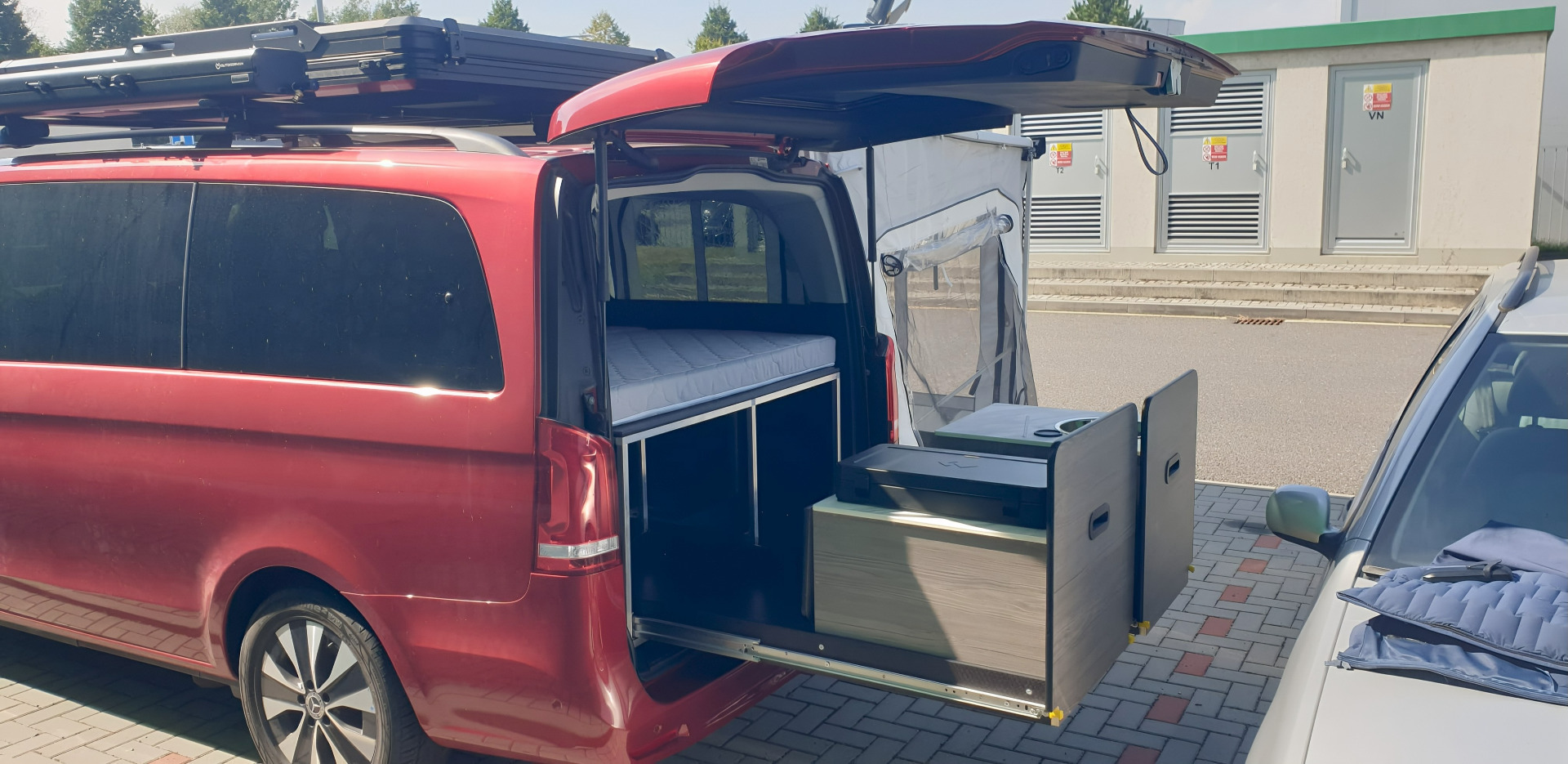 Jedna malá vestavba do Mercedesu V .pojezdy 1500mm na zatěž cca 250Kg,Alu konstrukce .Výbava ECOflow glacier, EcoFlow Wave+záložní baterie a Delta
